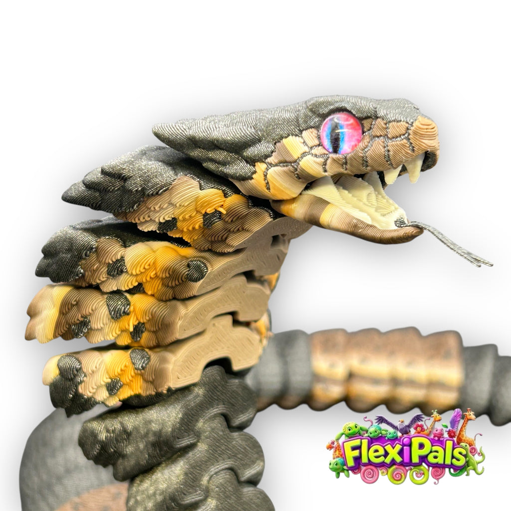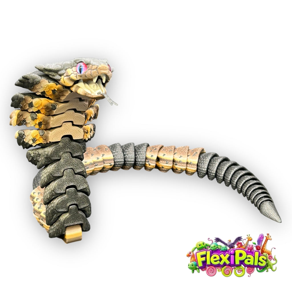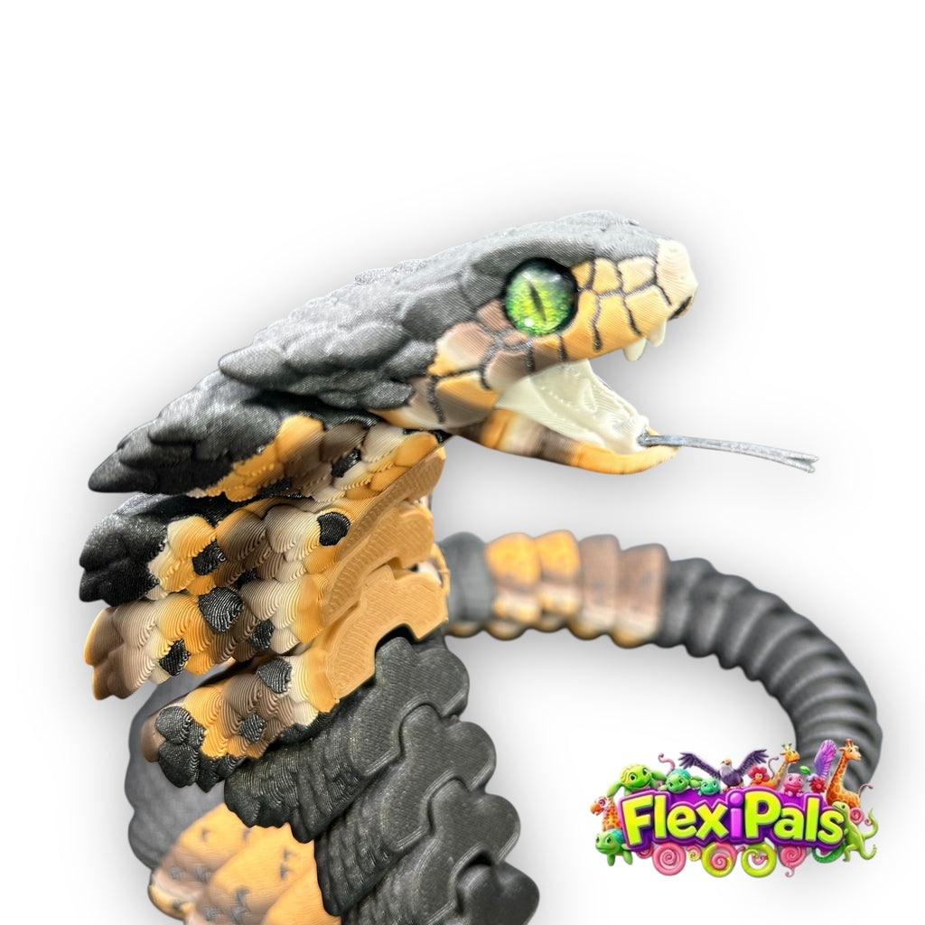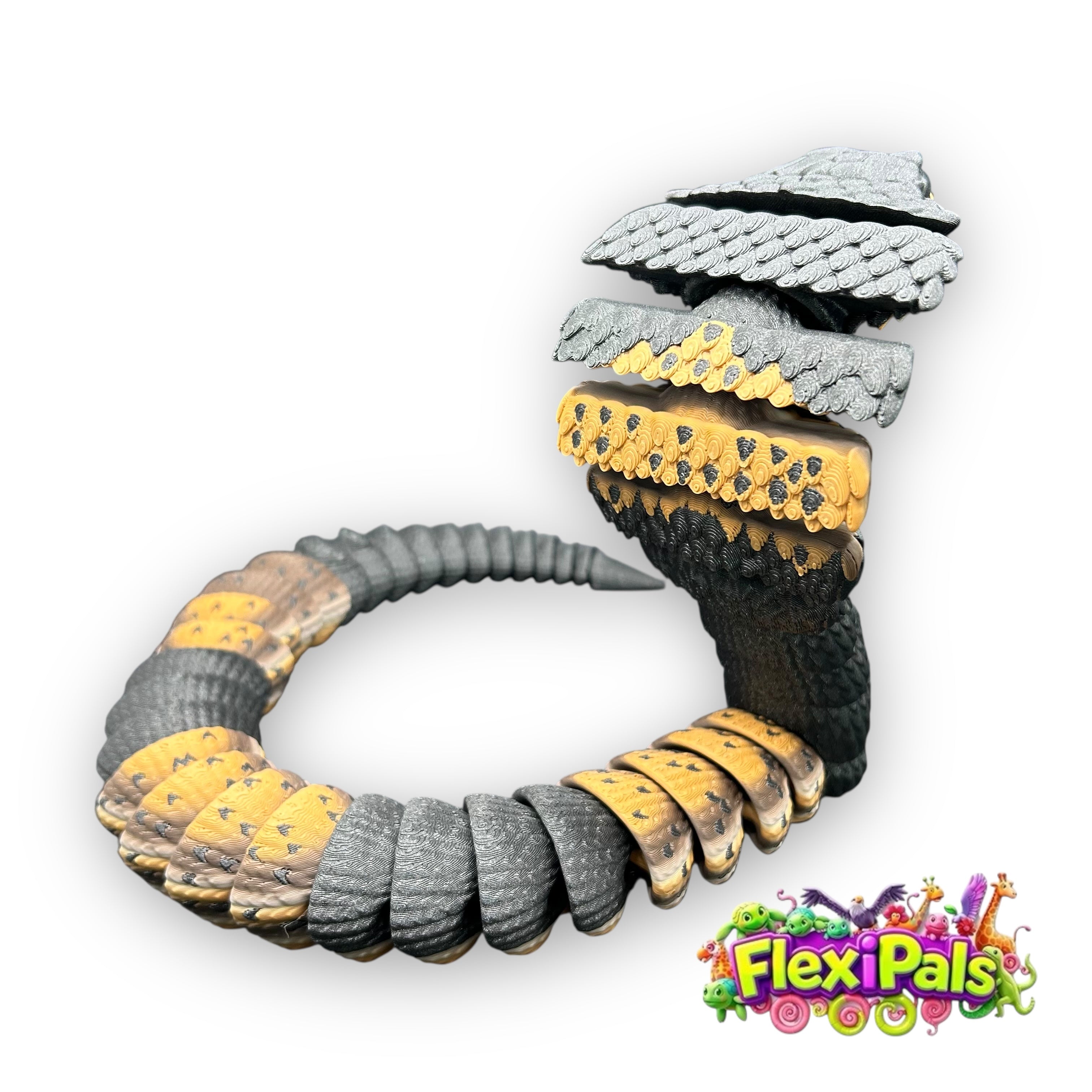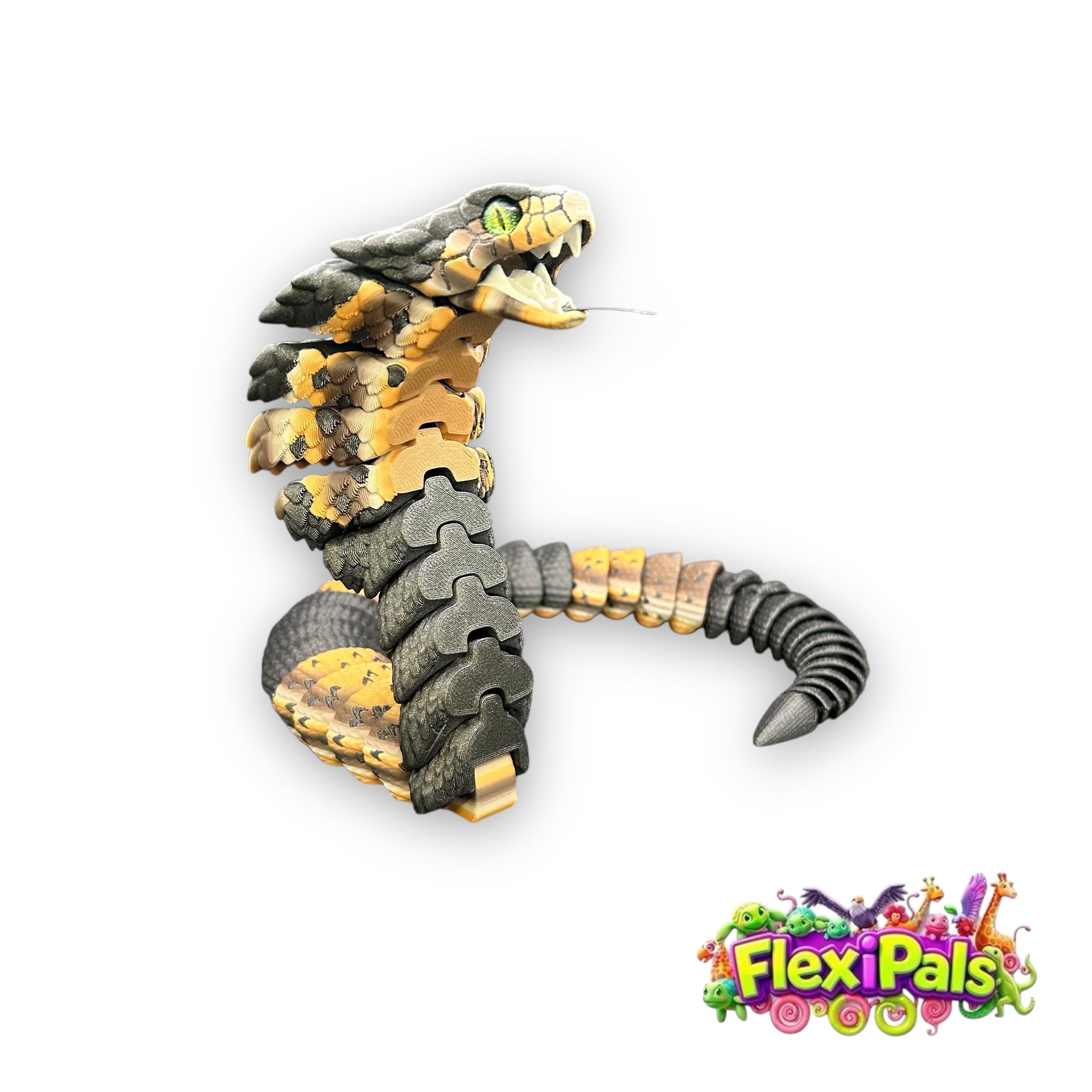 Unleash the striking Flexi Cobra — a 3D printed fidget that’s as fierce as it is collectible. Featuring sharp fangs, a slithering tongue, and a fully flexible body, this cobra is ready to pose, coil, or command attention on your desk or shelf.